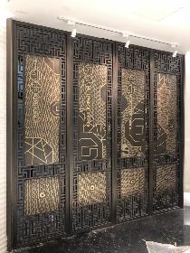 材質(zhì):H62銅,厚度10—15mm尺寸:客戶實(shí)際尺寸定制制作工藝:整板雕刻;銅花配件:銅花開模鑄壓成 ..